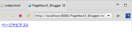 Project ExplorerでPageNavi3_Bloggerプロジェクト内のWebContetフォルダ内のindex.htmlを右クリック→Run As→Run on Server。