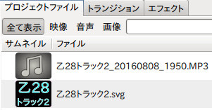 適用ボタンをクリックするとプロジェクトファイルにタイトルファイルが表示されますのでこれをトラック2にドラッグします。